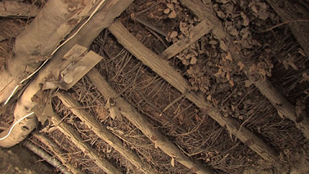 A layer of brush was placed on the rafters. A layer of wheat or flax straw was placed on the brush.