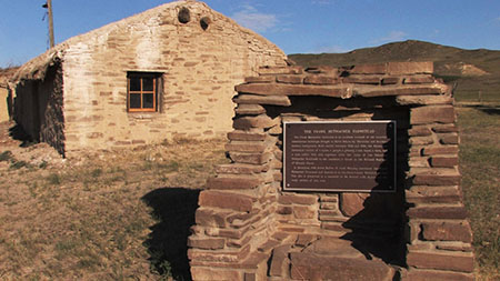 The Frank Hutmacher farmstead is an excellent example of the stoneslab construction technique brought to North Dakota by Ukrainian and Russian-German immigrants. Built mostly between 1928 and 1930, the Hutmacher farmstead consists of a house, a garage, a granary, a hen house, a barn, and a root cellar. The site, together with the ruins of the Valentine Hutmacher farmstead to the southeast, is listed on the National register of Historic Places.